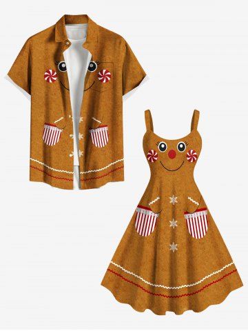 Robe débardeur grande taille à imprimé bonbon et pain d'épices de Noël - Brun - Brun