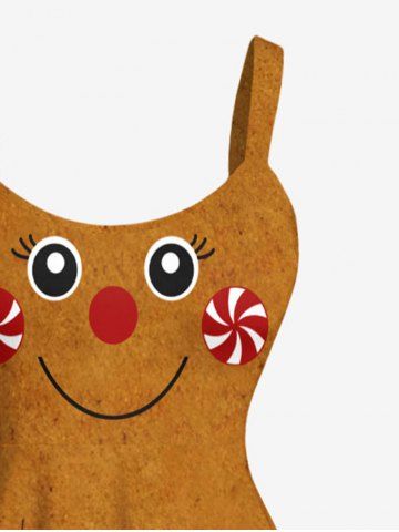 Robe débardeur grande taille à imprimé bonbon et pain d'épices de Noël - Brun - Brun