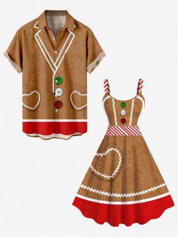 Robe débardeur grande taille à imprimé cœurs en pain d'épices et boutons colorés - Brun Légère - Marron Clair