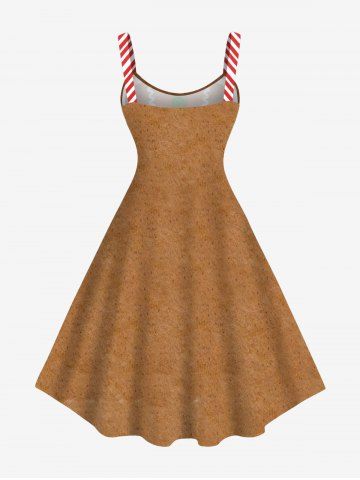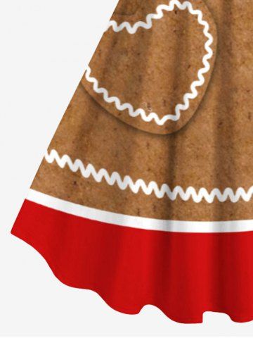 Robe débardeur grande taille à imprimé cœurs en pain d'épices et boutons colorés - Brun Légère - Marron Clair