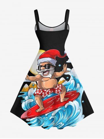 Robe débardeur grande taille imprimée Père Noël, soleil, nuage et vagues - Noir - Noir