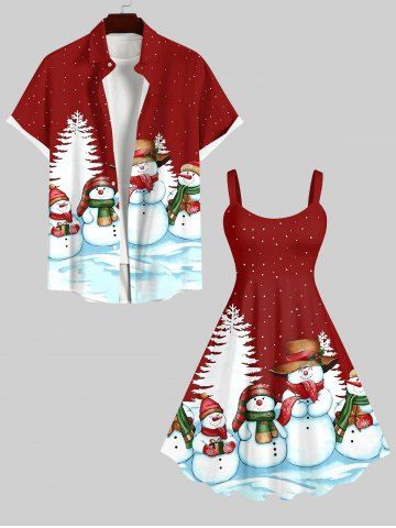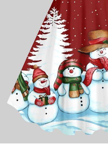 Robe Débardeur Imprimé Bonhomme de Neige et Sapin de Noël Grande Taille - Rouge - Rouge