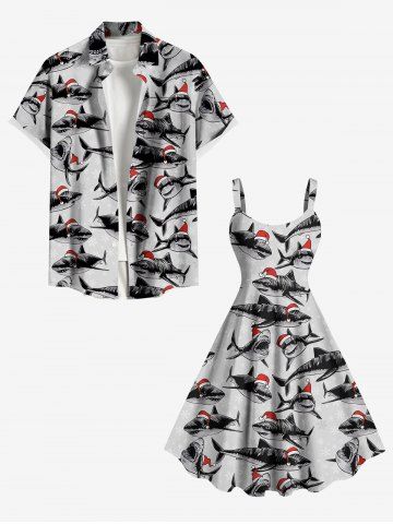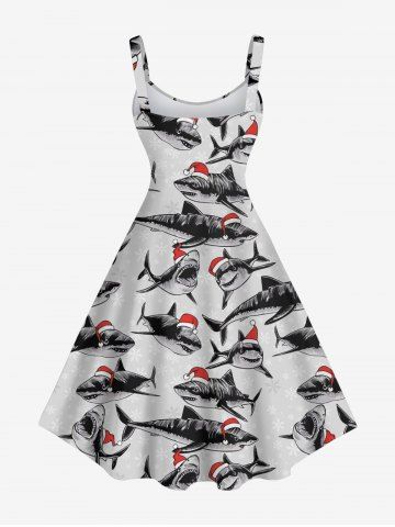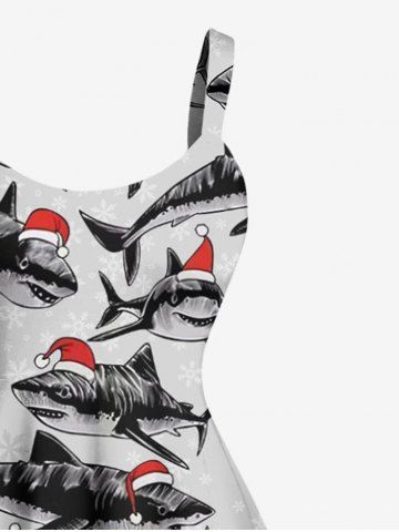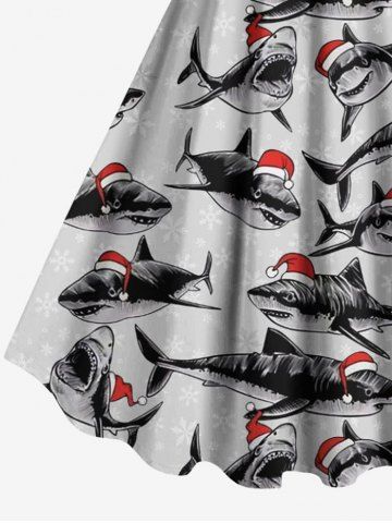 Robe débardeur imprimée requins avec chapeau de Noël grande taille - Gris Clair - Gris Clair