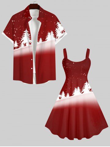 Robe Débardeur Ombrée Flocon de Neige et Sapin de Noël Imprimés de Grande Taille - Rouge - Rouge
