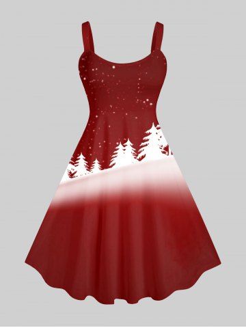 Robes > Robe Débardeur Ombrée Flocon de Neige et Sapin de Noël Imprimés de Grande Taille