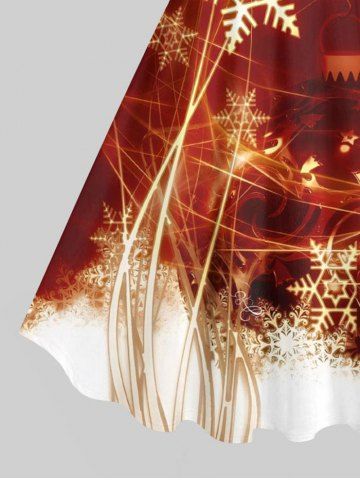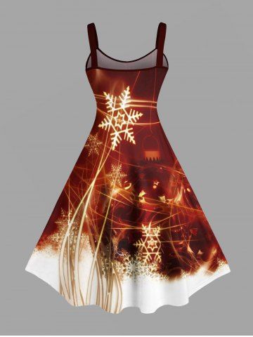 Robe débardeur trapèze grande taille à imprimé flocons de neige et feux d'artifice - Rouge - Rouge