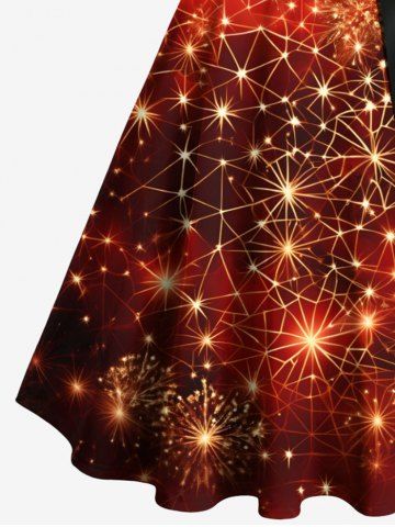 Robes > Robe grande taille à col rabattu et ceinture, motif feu d'artifice de Noël, toile d'araignée scintillante, imprimé 3D