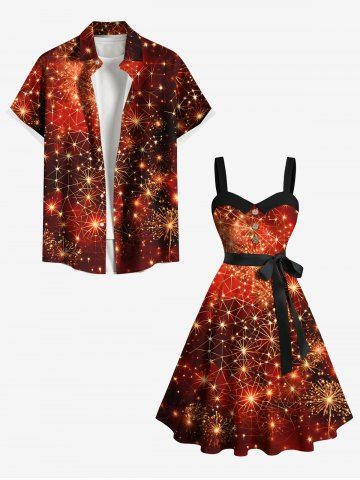 Robe grande taille à col rabattu et ceinture, motif feu d'artifice de Noël, toile d'araignée scintillante, imprimé 3D - Orange - Orange