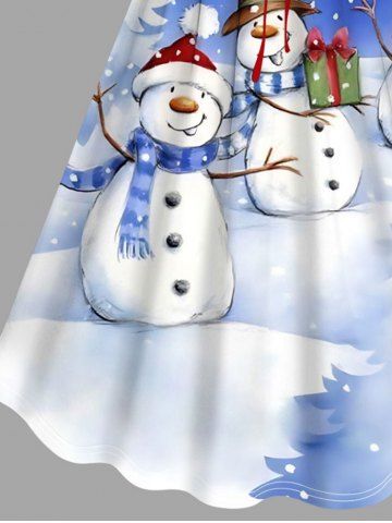 Robe grande taille à rayures imprimées sapin de Noël, bonhomme de neige et flocons de neige - Bleu Ciel - Bleu Ciel