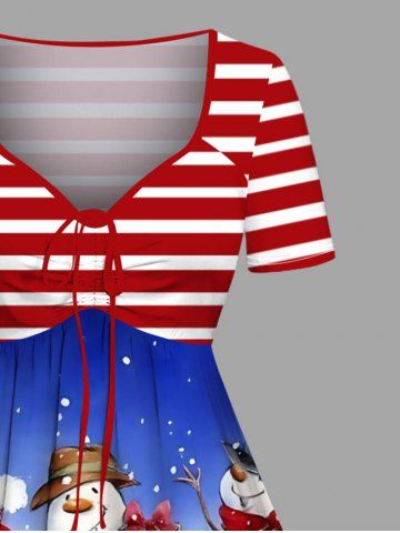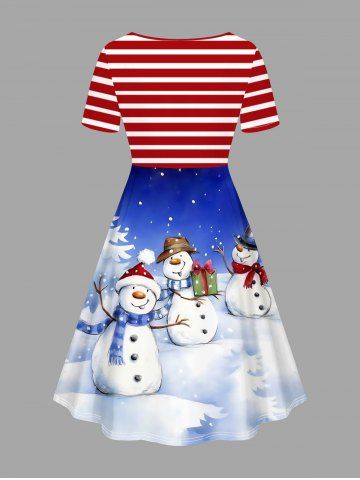 Robes > Robe grande taille à rayures imprimées sapin de Noël, bonhomme de neige et flocons de neige