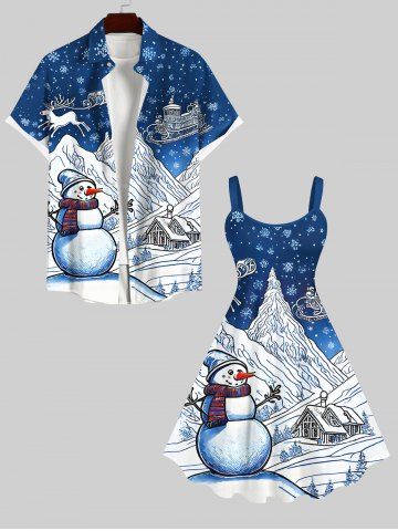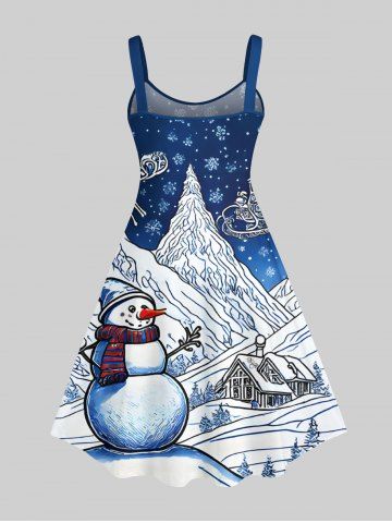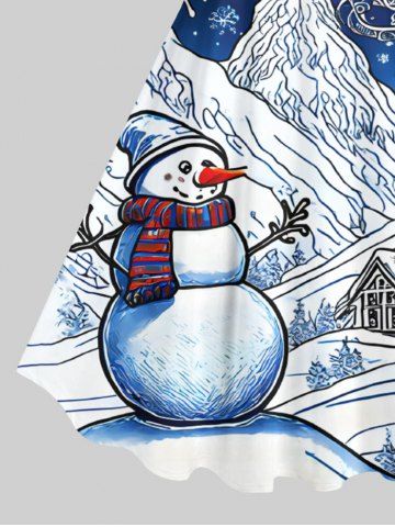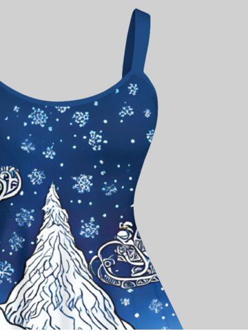 Robe Ligne A Cheval Sapin de Noël et Flocon de Neige Imprimés de Grande Taille - Bleu - Bleu