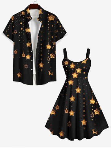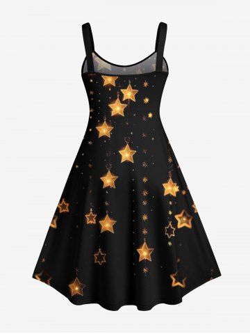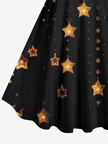 Robe Ligne A Etoile Brillante Imprimée de Noël de Grande Taille - Noir - Noir
