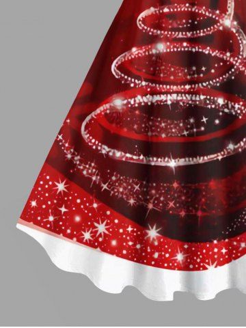 Robe Ligne A Etoile Ombrée Sapin de Noël Imprimés de Grande Taille à Paillettes - Rouge - Rouge