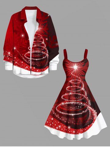 Robes > Robe Ligne A Etoile Ombrée Sapin de Noël Imprimés de Grande Taille à Paillettes
