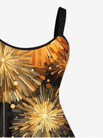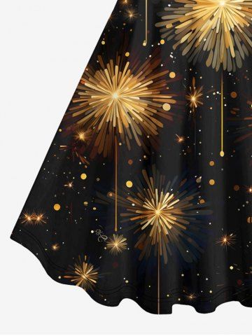 Robe Ligne A Galaxie Feux D'Artifice de Noël Imprimée de Grande Taille à Paillettes - Noir - Noir
