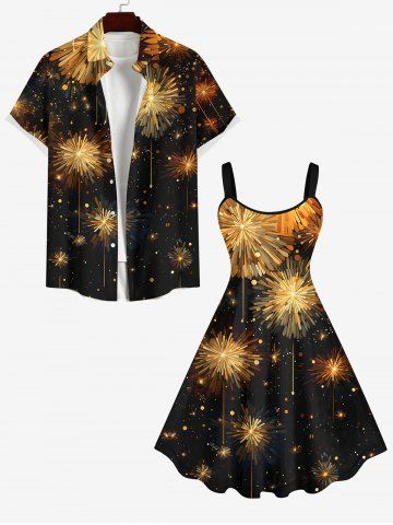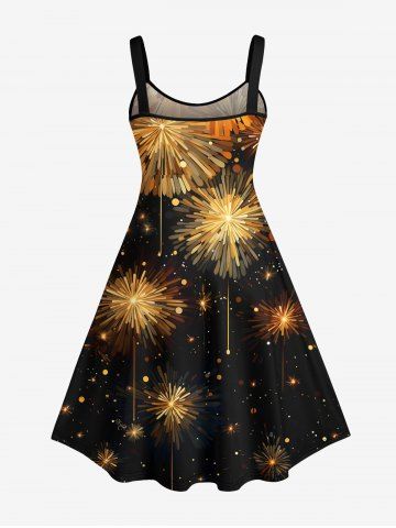 Robes > Robe Ligne A Galaxie Feux D'Artifice de Noël Imprimée de Grande Taille à Paillettes