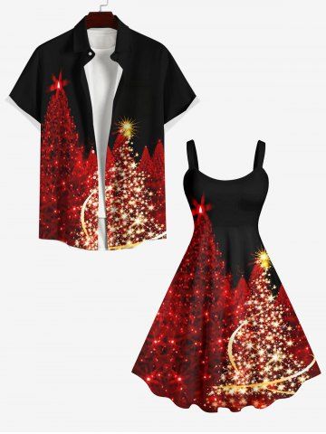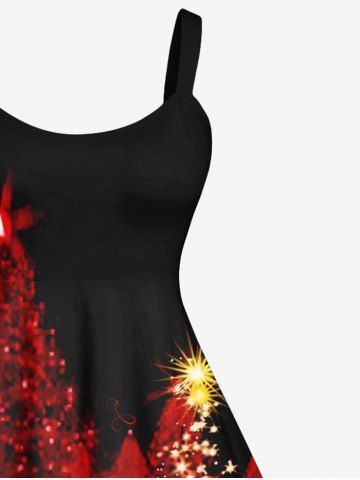 Robe Ligne A Sapin de Noël Brillant Imprimé de Grande Taille - Noir - Noir