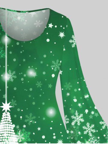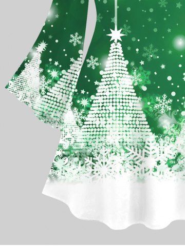 Robe Ligne A Sapin de Noël Galaxie Imprimés de Grande Taille à Manches Evasées - Vert - Vert