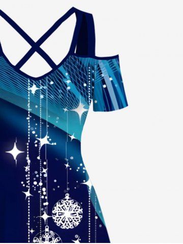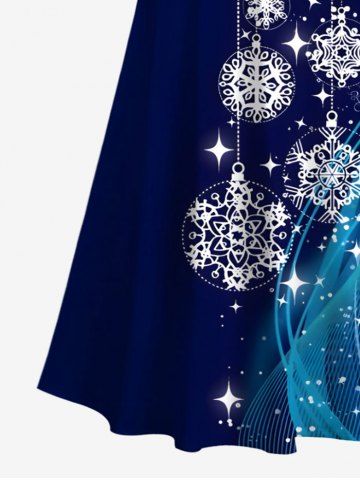Robe Maxi à Épaules Dénudées avec Croisés Imprimé Flocons de Neige et Pompons Grande-Taille - Bleu De Minuit - 6x