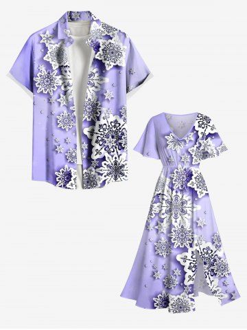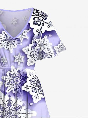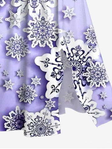 Robe Mi-Longue Fendue Flocon de Neige de Noël Imprimé de Grande Taille - Pourpre - Pourpre