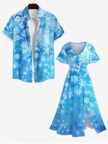 Robe Mi-Longue Fendue Teintée Flocon de Neige de Noël de Grande Taille - Bleu - Bleu