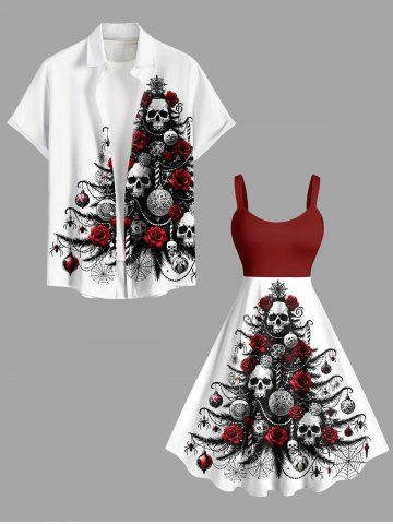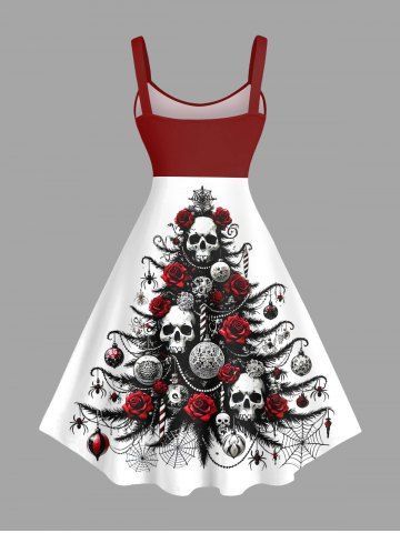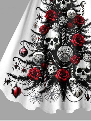 Robe trapèze grande taille à imprimé tête de mort, rose, fleur, toile d'araignée, sapin de Noël, boule - Blanc - Blanc