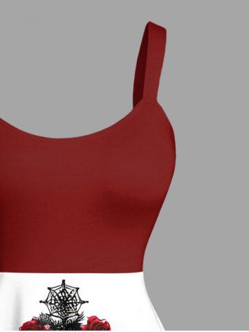 Robes > Robe trapèze grande taille à imprimé tête de mort, rose, fleur, toile d'araignée, sapin de Noël, boule