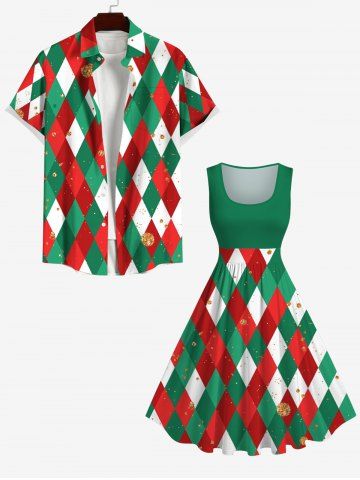 Robe Vintage Blocs de Couleurs Losange Elf Imprimé en Treillis de Grande Taille - Vert - Vert