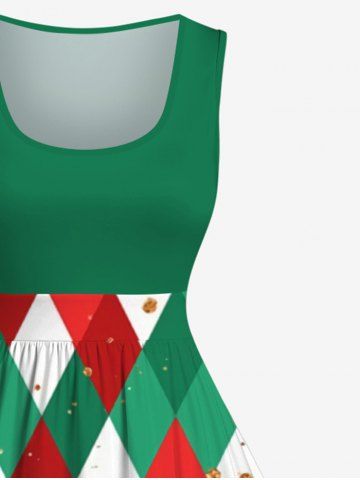 Robe Vintage Blocs de Couleurs Losange Elf Imprimé en Treillis de Grande Taille - Vert - Vert