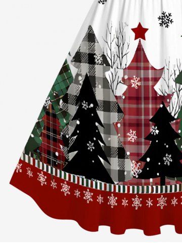 Robes > Robe vintage grande taille à carreaux, motif sapin de Noël et flocons de neige, style années 50