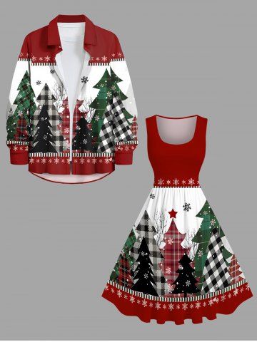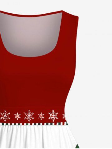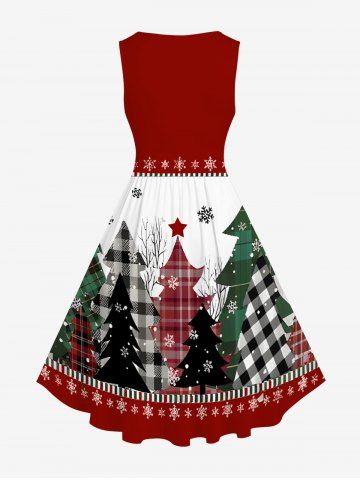 Robe vintage grande taille à carreaux, motif sapin de Noël et flocons de neige, style années 50 - Rouge - Rouge