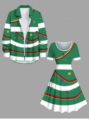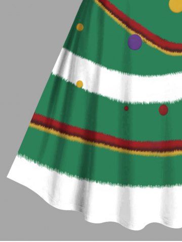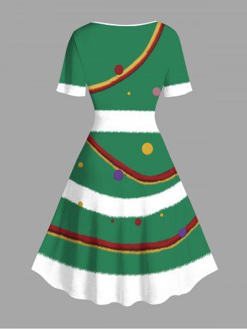 Robe vintage grande taille à imprimé colorblock et rubans de boules de Noël - Vert Jade - Xxs