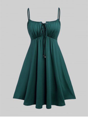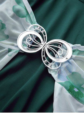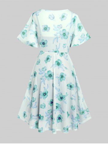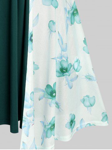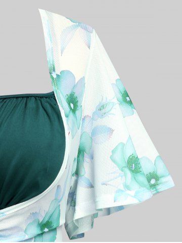 Ensemble robe fleurie à manches flottantes et robe caraco trapèze à lacets grande taille - Vert Profond - 2x | Us 18-20