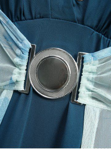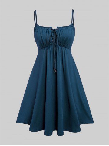 Ensemble robe fleurie à manches papillon grande taille et robe débardeur trapèze à lacets - Bleu - Bleu