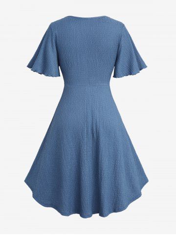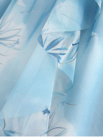 Plus Size Flowers Ombre Print Lettuce Trim Ruffles Twist Textured 2 In 1 Dress - Bleu - Bleu