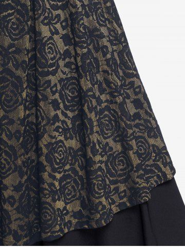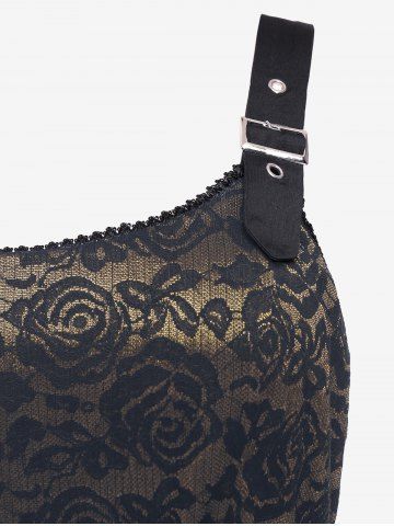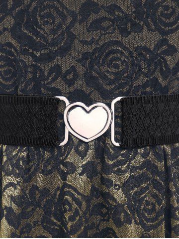 Robes Décontractées > Plus Size Vintage Floral Lace Jacquard Buckled Straps Fit and Flare Belted Dress