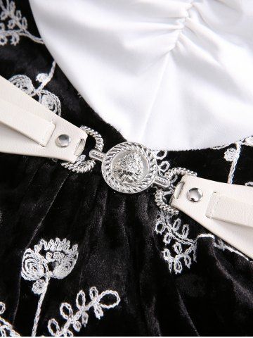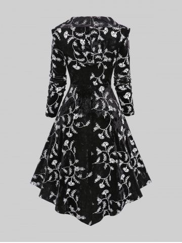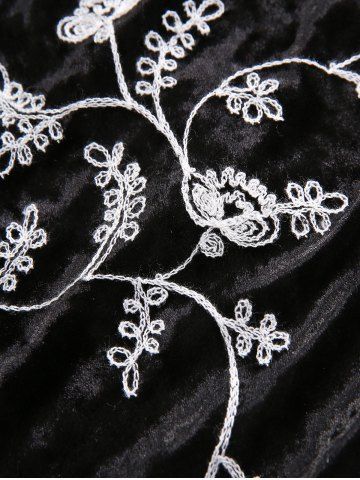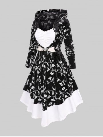 Robe à Capuche Asymétrique Fleur Brodée en Blocs de Couleurs à Ourlet en Dentelle de Grande Taille en Velours - Noir - Noir