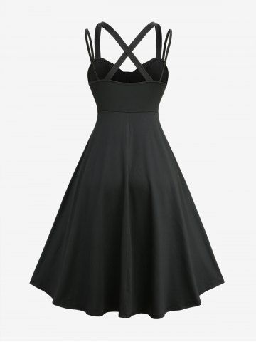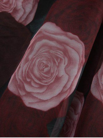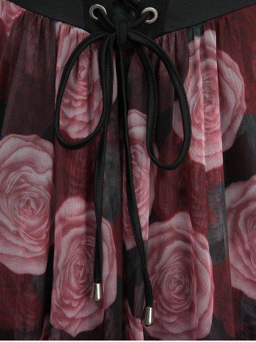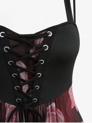Robe Asymétrique Feuille Fleur Imprimée à Ourlet en Dentelle de Grande Taille à Lacets - Noir - Noir