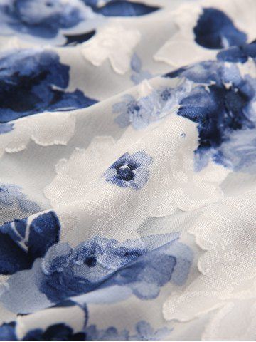 Robe Asymétrique Plissée Fleur à Coupe Basse de Grande Taille en Jacquard - Bleu Profond - 1x | Us 14-16