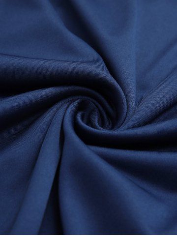 Robe Asymétrique Plissée Fleur à Coupe Basse de Grande Taille en Jacquard - Bleu Profond - 2x | Us 18-20