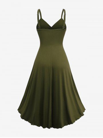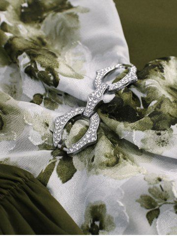 Robe Asymétrique Plissée Fleur à Coupe Basse de Grande Taille en Jacquard - Vert Profond - 4x | Us 26-28