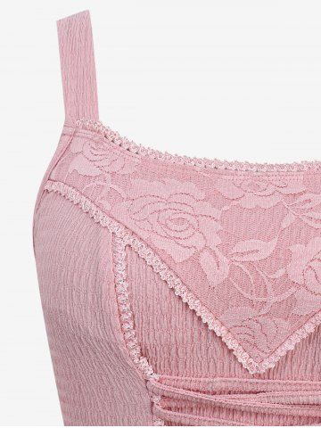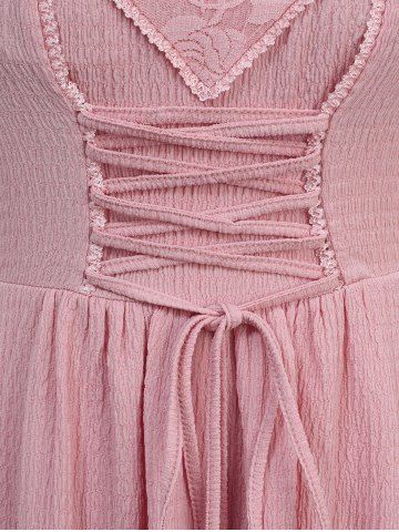 Robe asymétrique style cottagecore grande taille avec empiècement en dentelle et volants superposés - Rose Clair - Rose Léger