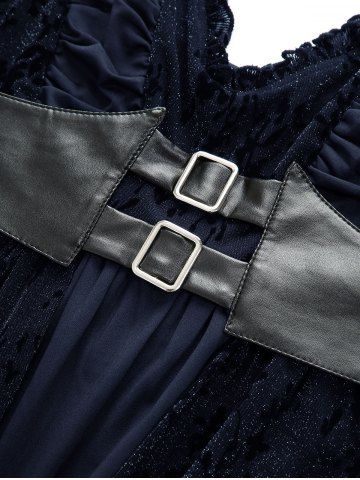 Robe débardeur asymétrique style gothique grande taille à paillettes et à fleurs, avec empiècement en PU froncé, ceinture fendue, coupe haute et basse - Bleu Profond - L | Us 12