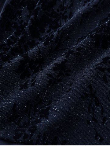 Robe débardeur asymétrique style gothique grande taille à paillettes et à fleurs, avec empiècement en PU froncé, ceinture fendue, coupe haute et basse - Bleu Profond - 1x | Us 14-16