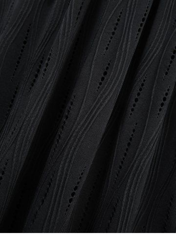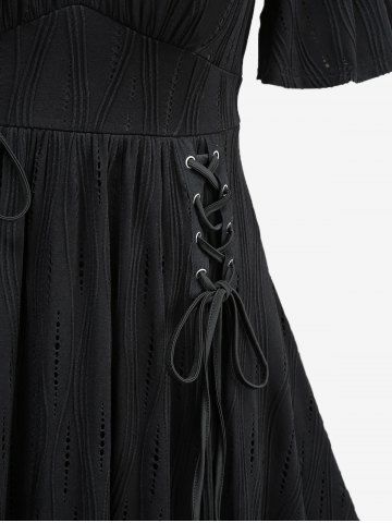 Robe décontractée grande taille en pointelle ajourée, jacquard, à lacets, ourlet péplum, unie, superposée, épaules dénudées - Noir - Noir