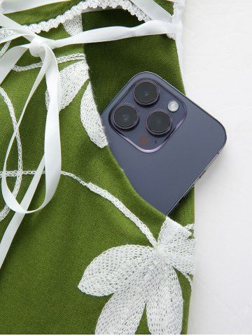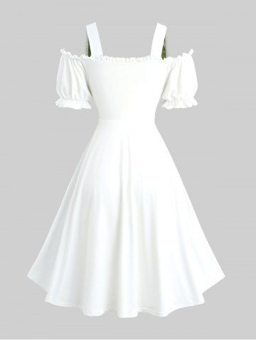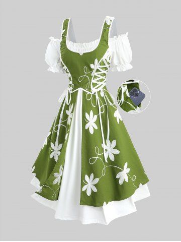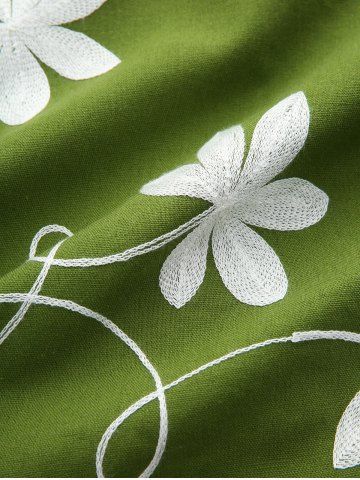 Robe grande taille à broderies florales, lacets, volants froncés, poches et épaules dénudées - Vert - Vert
