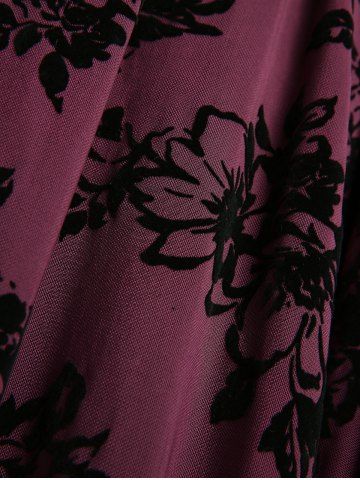 Robe grande taille à fleurs, laçage, volants, manches évasées, asymétrique et décolleté en V avec empiècement croisé. - Rouge Foncé - 2x | Us 18-20