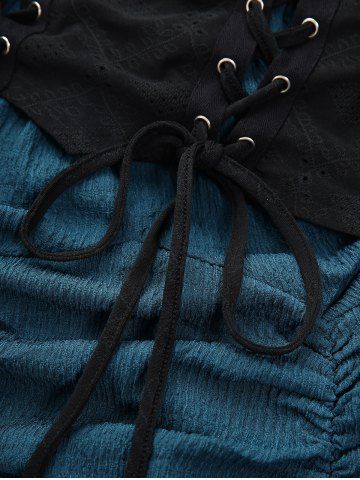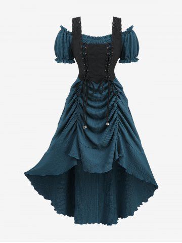 Robes Décontractées > Robe mi-longue en crêpe taille plus, style Renaissance médiévale, à lacets, volants, froncée, cintrée, taille haute et basse
