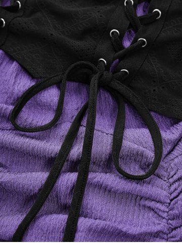Robe midi en crêpe style Renaissance médiévale grande taille, à lacets, volants et fronces, coupe asymétrique. - Violet Lavande - L | Us 12