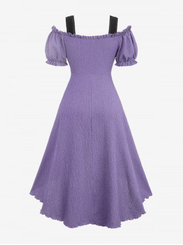 Robe midi en crêpe style Renaissance médiévale grande taille, à lacets, volants et fronces, coupe asymétrique. - Violet Lavande - 2x | Us 18-20